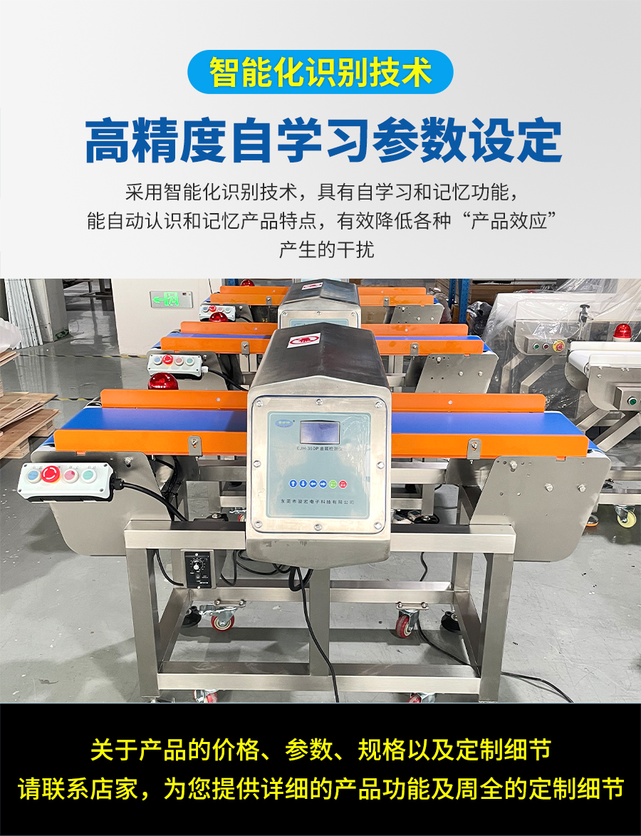 安護神EJH-360金屬檢測機采用先進的雙信號(磁感+電導)或多頻技術,精準檢測鐵、非鐵(如銅、鋁、不銹鋼)等各類金屬異物,靈敏度可達Fe 0.3mm, SUS 0.5mm (具體數值根據產品實際性能填寫),有效杜絕漏檢。獨特算法和屏蔽設計,有效抵抗產品效應(濕、鹽、酸等)和環境干擾(振動、溫度波動),大幅降低誤報率,保障生產流暢性。配備氣動翻板、推桿、吹氣等多種快速響應剔除機構,確保檢測到的含金屬產品被有效隔離,不影響合格品通過。 適用于肉禽水產加工、烘焙與糖果、乳制品、休閑零食、調味品與醬料、速凍食品、寵物食品、包裝材料進料檢測等行業