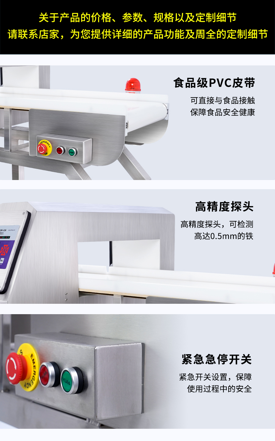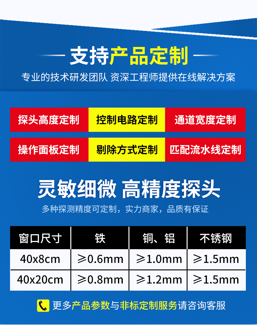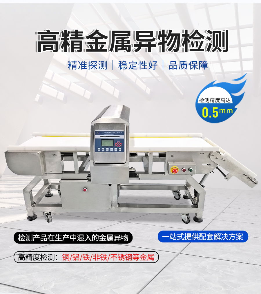 EJH-320系列全金屬檢測儀,可根據生產線需求配套定制窗口尺寸,檢測精度最大化,先進數字信號處理技術,有效克服產品效應,可精準檢測鐵、不銹鋼、銅、鋁等金屬,靈敏度高達0.5mm,廣泛應用在檢測肉類、水產、果蔬等食品加工過程中混入的金屬碎片、鐵絲等,精準高效,為您徹底解決金屬異物隱患。